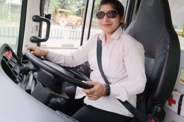 पिंक बस की स्टेयरिंग थामे संघर्ष और साहस की मिसाल बनी निशा शर्मा