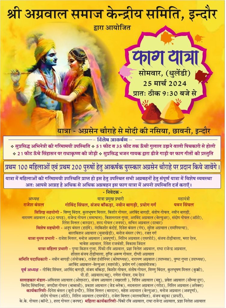 केंद्रीय समिति की फाग यात्रा 25 मार्च को