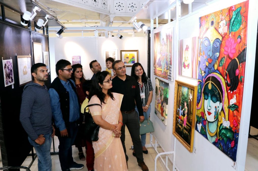 दो दिनी कला प्रदर्शनी कला के रंग की शुरुवात क्रिएट स्टोरीज सोशल वेलफेयर सोसायटी द्वारा देवलालिकर आर्ट गैलरी में हुई। संस्थापक दीपक शर्मा ने बताया की संस्था ने इस बार आर्ट डिस्प्ले के लिए मूवेबल सेटप बनाया है ताकि कही भी हम प्रदर्शनी को प्रदर्शित कर सकें क्योंकि शहर में कला विथिकाएं समाप्त हो रही है एवं कलाकारों को प्लेटफार्म मिलना जरूरी है। इस प्रदर्शनी में 7 से 75 साल तक के 61 कलाकारों की 115 कृतियां प्रदर्शित हुई है। उद्घाटन आरएएस आरती शर्मा ने किया। इस खास मौके पर डॉ अमित सोलंकी, डॉ अभ्युदय वर्मा, विक्रम अवार्ड पंकज सोनी, सीमा सोनी, मनोज जैन, भरत सिंह आदि मौजूद थे। इस प्रदर्शनी में ऑयल पेंटिंग, एक्रेलिक, वाटर कलर, डॉट पेंटिग, मंडला आर्ट, गौंड आर्ट, पेंसिल स्केच, कलर पेंसिल वर्क, बॉटल आर्ट, क्ले वर्क, बेस्ट फ्रॉम वेस्ट, मधुबनी, थ्रेड आर्ट, चारकोल , रेजिन वर्क्स, हैण्ड मेड वर्क्स आदि आर्ट फॉर्म प्रदर्शित है। कलाकारों ने कला के रंगों से कृतियां उकेरे है कही भक्तिमय दृश्य तो कही प्रकृति की खूबसूरती दिखाई है साथ ही क्ले से बनी पेंटिंग, रेजिन आर्ट तो किसी ने फोक आर्ट तथा गौंड आर्ट दर्शाया है एवं भक्तिभाव के साथ ही स्कल्पचर में मलखंभ, मॉडर्न आर्ट, मंडला आर्ट, मधुबनी के साथ कुछ फिगरेटिव, कुछ रियलिस्टिक, कुछ लैंडस्केप तो कुछ एब्सट्रेक्ट एवं बच्चो ने भी कला के रंगो के जरिए व्यक्त किए अपने मन के भाव । इंदौर के अलावा अन्य शहरों के कलाकार भी इसका हिस्सा रहे हैं। इस प्रदर्शनी में इस बार प्रिया वर्मा, शफीक हाशमी, शिवांगी शर्मा, राजनंदिनी गंगराड़े, निकिता बैस, रूपाली सोनी, हर्षल आर्य, केतकी प्रसाद मुले, कृष्णव कोलटे, काजल कांबले, मोनिका सोनी, सविता गुप्ता, अनिशा पटेल, नाजनीन बैग, इशाली सोलंकी, सुक्रति मित्तल नेमा, ज्योति उपाध्याय, राजिका जैन, नेहा नहाटा, अंजलि सराफ, शाश्वत नेमा, नीता नेमा, पाविन जगदीसन, मुकुल, अक्षित शर्मा, राजकुमार परमार, अलका भारद्वाज, जीत डे, नंदनी प्रजापति, जगबंधु महतो, अंशी शर्मा, कामाक्षी परसाई, अंजलि पाटीदार, चर्चिका गोस्वामी, राजवीर सिंह चावला, राज कुमार चौहान, तृप्ति यादव, सुरभि ठाकुर, दीक्षा जैन, झलक ओझा, निशा तंवर, नेहा नामदेव, मुस्कान नामदेव, टीशा भाटी, प्रियांश राजेश नामदेव, अदिति जैन, देविका मालवीय, चार्वी गोयल, जाग्रति काग, गरिमा वर्मा, राधिका प्रजापति, स्वाति मुकाती, आस्था गुप्ता, तुषार धरम, पीयूष कुमार सिंह, नंदिका जैन, रिया जैन, मीना ठाकुर, अंकिता विजय्र्निया, मोहिनी गोयल और ध्रुव बर्मन अपने आर्ट वर्क प्रदर्शित किए। समापन पर मंडला आर्ट कंपटीशन आयोजित होगी।