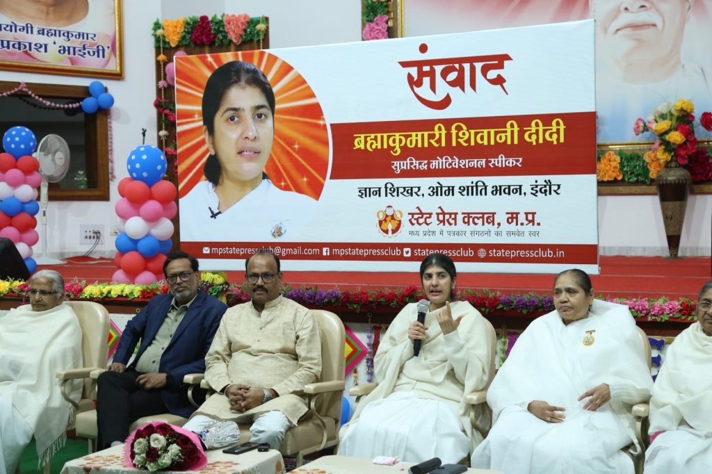 संतों के प्रयासों के बाद भी समाज में विकृति बढऩे के प्रश्न पर ब्रह्माकुमारी शिवानी दीदी ने कहा समाज में परिवर्तन आ रहा है तथा आज युवा वर्ग भी ध्यान और सत्संग से जुडऩे लगा है। आज संतों के प्रयास के कारण कम से कम लोगों को सही जीवन शैली का विकल्प दिख रहा है, यदि वह विकल्प दिखाना ही बंद हो गया तो और नुकसान होगा। समाज के परिवर्तन में मीडिया की बहुत महत्वपूर्ण और गंभीर भूमिका बताते हुए उन्होंने कहा कि आज कंटेंट में इतनी ताकत है की फोन से ही कलयुग आया है और फोन से ही सतयुग आएगा। भारत की संस्कृति में विश्व को बदलने की शक्ति है तथा भारत विश्व गुरु बनेगा इसमें कोई संदेह नहीं है लेकिन इसमें मीडिया को अपनी भूमिका जिम्मेदारी से निभानी होगी। जैसा कंटेंट मीडिया दिखाएगा वैसी ही देश की मन:स्थिति बनेगी। उन्होंने सुझाव दिया की मीडिया किसी समस्या पर यदि तीन पैराग्राफ लिखता है तो एक पैराग्राफ उसके समाधान पर भी लिखे और यदि समाधान संभव न हो तो उससे प्रभावित लोगों के लिए दुआ की चंद लाइन लिखे। उन्होंने कहा कि जैसे वर्तमान में महीनों से युद्ध जारी है लेकिन उससे प्रभावित लोगों के प्रति जन भावना नदारत है। मीडिया को रील लाइफ के माध्यम से रियल लाइफ बदलने का प्रयास करना होगा। शिवानी दीदी ने पत्रकारों से ब्रह्माकुमारी मिशन के माउंट आबू स्थित केंद्र पर आकर ध्यान योग प्रशिक्षण लेने का निमंत्रण भी दिया। कार्यक्रम के आरंभ में स्थित प्रेस क्लब, मध्यप्रदेश के अध्यक्ष प्रवीण कुमार खरीवाल ने शॉल उड़ाकर ब्रह्माकुमारी शिवानी दीदी का सम्मान किया। वरिष्ठ पत्रकार क्रांति चतुर्वेदी, स्टेट प्रेस क्लब के मुख्य महासचिव नवनीत शुक्ला, रवि चावला, सुदेश गुप्ता, रुक्मणी लिंबोदिया ने पुष्प गुच्छ से शिवानी दीदी का स्वागत किया। शिवानी दीदी के सम्मान में प्रदत अभिनंदन-पत्र का वचन एवं संवाद कार्यक्रम का संचालन संस्कृतिकर्मी एवं पत्रकार आलोक बाजपेयी ने किया। जबकि अभिनंदन-पत्र सुश्री रचना जौहरी, मीना राणा शाह, सोनाली यादव तथा दिव्या विजयवर्गीय ने प्रदान किया। अंत में ब्रह्माकुमारी शिवानी दीदी को स्टेट प्रेस क्लब, मध्यप्रदेश की ओर से स्मृति चिन्ह स्मारिका एवं गांधी साहित्य क्लब के सचिव आकाश चौकसे ने प्रदान किया। इस अवसर पर बड़ी संख्या में प्रिंट मीडिया, इलेक्ट्रॉनिक मीडिया एवं वेब मीडिया के पत्रकार उपस्थित थे।