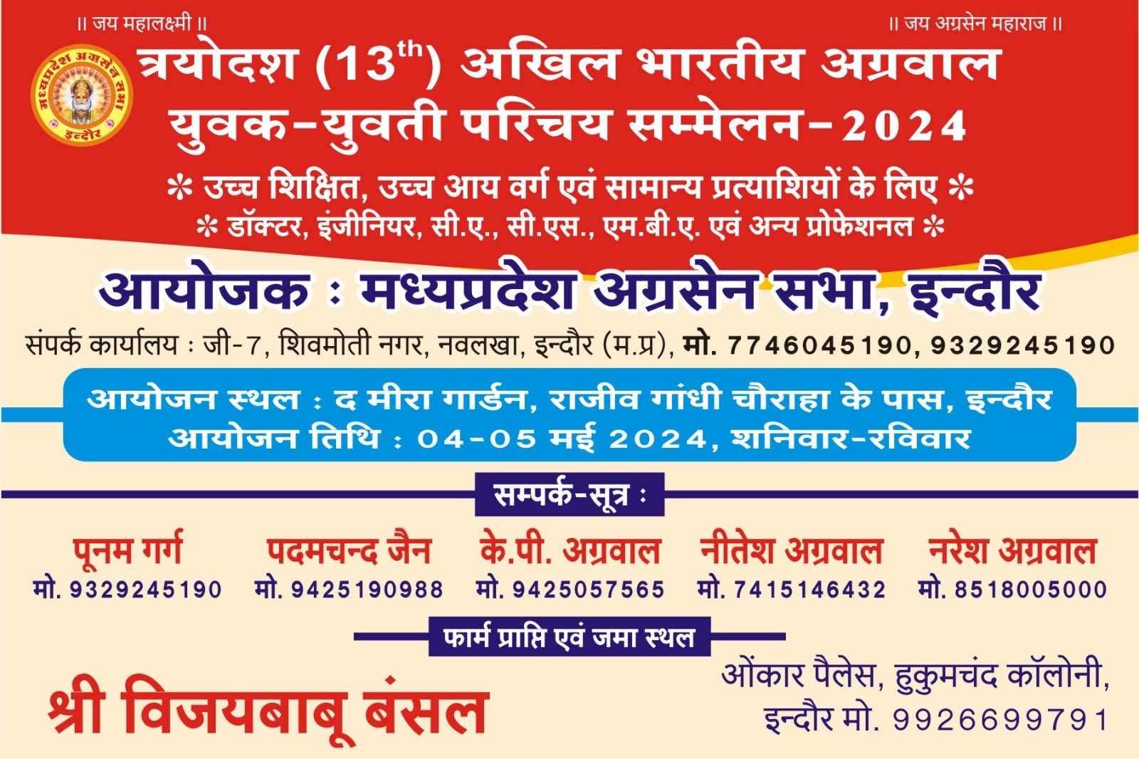 Eventsयुवक युवती परिचय सम्मेलन adminFebruary 4, 2024February 4, 202401 mins युवक युवती परिचय सम्मेलन Post navigation Previous: अंतिम यात्रा (शव यात्रा)Next: फिल्म अभिनेता सोनू सूद पहुँचे इंदौर, प्रशंसकों ने घेरा Leave a Reply Cancel replyYour email address will not be published. Required fields are marked *Comment * Name * Email * Website Save my name, email, and website in this browser for the next time I comment.