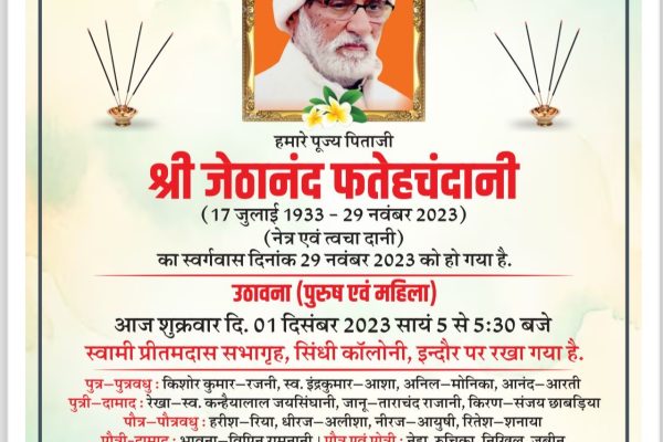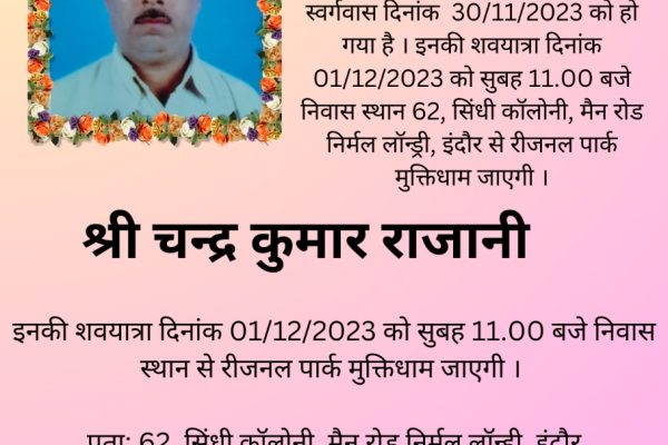 श्री अग्रसेन महासभा द्वारा 23 एवं 24 दिसंबर को श्री अग्रसेन महासभा मांगलिक भवन बाय पास इंदौर पर अग्रवाल एवं वैश्य समाज के सभी आयु के विधवा विधुर, तलाकशुदा एवं 30 वर्ष से अधिक आयु के अविवाहित युवक युवतियों के अखिल भारतीय जीवन साथी परिचय सम्मेलन का निःशुल्क आयोजन किया जा रहा है। इस हेतु…