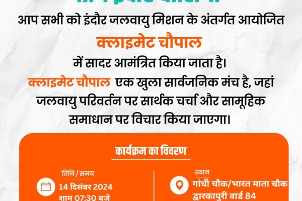इन्दौर जिलें में राज्य शिक्षा केन्द्र भोपाल के निर्देशानुसार राज्य स्तरीय विज्ञान, गणित, पर्यावरण एवं सामाजिक विज्ञान की प्रदर्शनी का आयोजन 30 एवं 31 जनवरी 2025 को किया जायेगा। राज्य स्तरीय प्रदर्शनी स्कूल शिक्षा मंत्री श्री उदयप्रताप सिंह के मुख्य आतिथ्य में “लता मंगेशकर सभागृह माँ नर्मदा चौराहा राजेन्द्र नगर में आयोजित की जायेगी। उक्त…