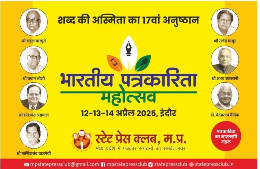 - भारतीय पत्रकारिता महोत्सव का 17वां आयोजन 12, 13 एवं 14 अप्रैल को इंदौर में, कई कार्यक्रम होंगे