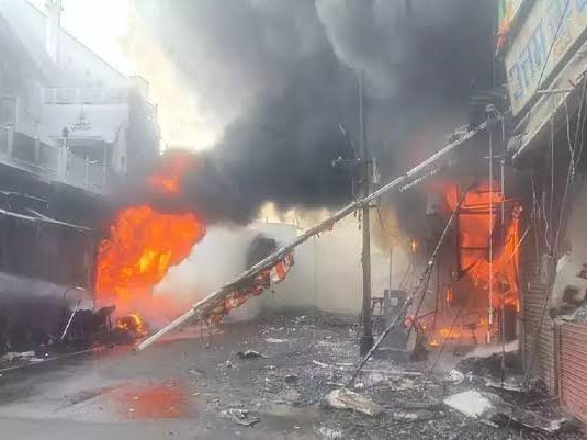 - एम टी क्लॉथ मार्केट में कपड़े की एक दुकान में भीषण आग लगी, फायर ब्रिगेड मौके पर