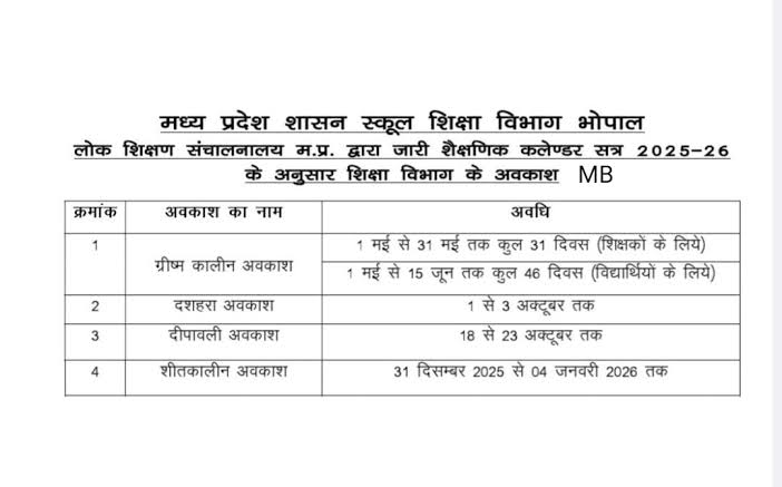 - स्कूल शिक्षा विभाग द्वारा 1 मई से 15 जून तक छात्रों के लिए और 1 मई से 31 मई तक शिक्षकों के लिए ग्रीष्म कालीन अवकाश घोषित