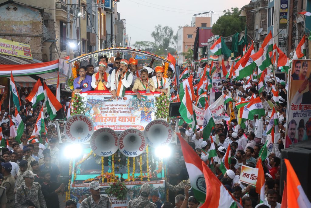 - भारतीय सेना के शौर्य सम्मान में निकली तिरंगा यात्रा, मुख्यमंत्री डॉ.मोहन यादव हुए शामिल, सैकड़ों मंचों से हुआ भव्य स्वागत