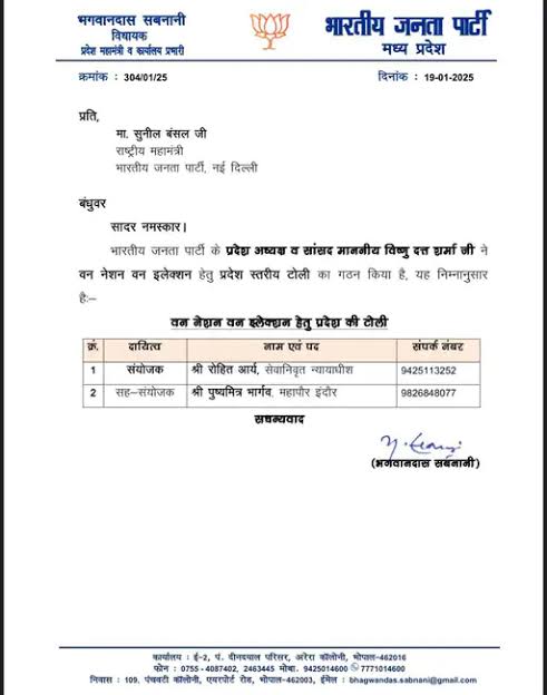 • महापौर पुष्यमित्र भार्गव को मिली बड़ी जिम्मेदारी, वन नेशन वन इलेक्शन के लिए मध्य प्रदेश टोली का गठन