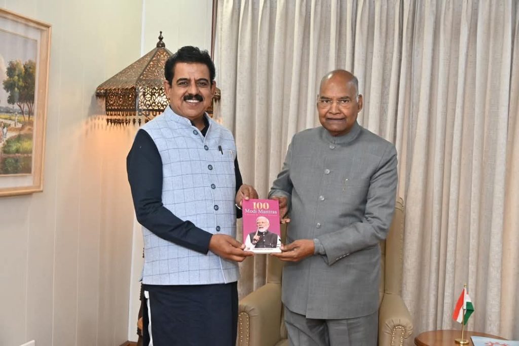 - इंदौर के सांसद शंकर लालवानी ने पूर्व राष्ट्रपति रामनाथ कोविंद को पुस्तक 100 Modi Mantras की भेंट