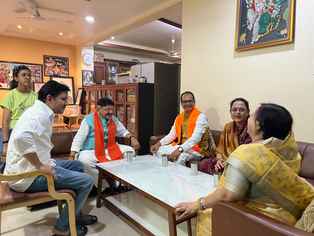 - केंद्रीय मंत्री शिवराज सिंह चौहान मंत्री कैलाश विजयवर्गीय के आवास पर रात्रि भोज के लिए पहुंचे, श्रीमती साधना सिंह भी साथ