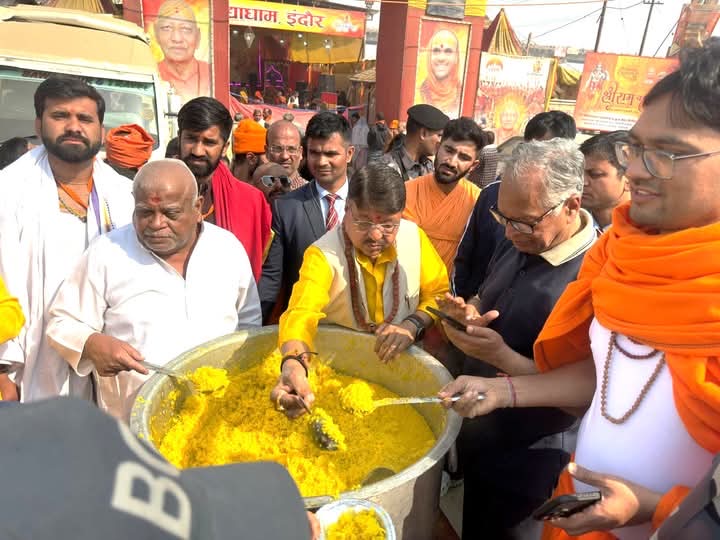 - प्रयागराज महाकुंभ के अमृत स्नान महापर्व पर श्रीश्री विद्याधाम आश्रम इन्दौर में मंत्री कैलाश विजयवर्गीय ने बाँटी प्रसाद