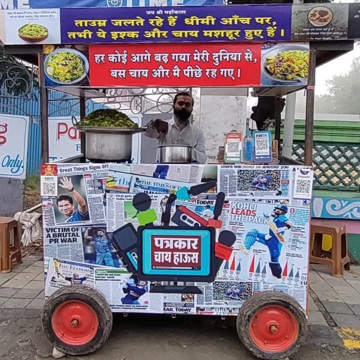 इंदौर में विडियो जर्नलिस्ट केशव मराठा ने नौकरी त्याग कर चाय नाश्ते की गुमटी खोल ली है। नाम रखा है, पत्रकार चाय हाऊस। जंजीर वाला चौराहा, बास्केटबाल काम्पलेक्स के पास स्थित यह गुमटी आकर्षण का केन्द्र बनी हुई है।